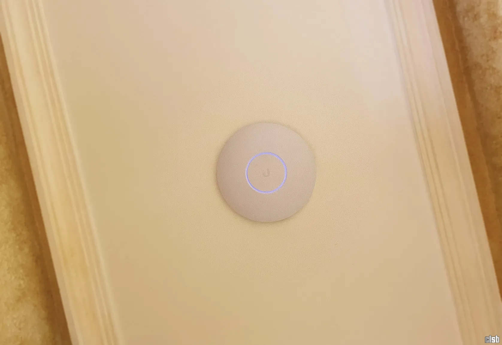 Un router DIY este o soluție superbă, dar are un lips major față de cele „all-in-one” din magazin: nu are Wi-Fi integrat. Pentru a rezolva problema wireless-ului, am ales o abordare mai profesională. Am instalat un Access Point dedicat, modelul Ubiquiti UniFi AC Pro, pe care l-am montat pe tavanul holului, practic în centrul apartamentului, pentru o propagare optimă a semnalului.