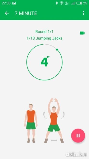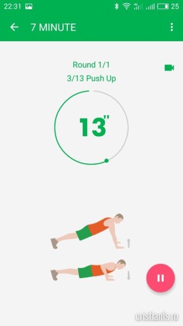 Cele șapte minute de exerciții par un mizilic, dar dacă se adeverește că așa și este, aplicația permite repetarea sau creșterea duratei fiecăruia în parte, modificări ce pot făcute din panoul propriu de configurare. La mine încă nu e cazul…