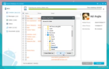 Vi se va cere, ca și în cazul contactelor, să indicați folderul în care doriți ca acestea să fie salvate după recuperarea lor din memoria internă a telefonului, iar după ce veți face acest lucru va fi inițiat procesul de recuperare.