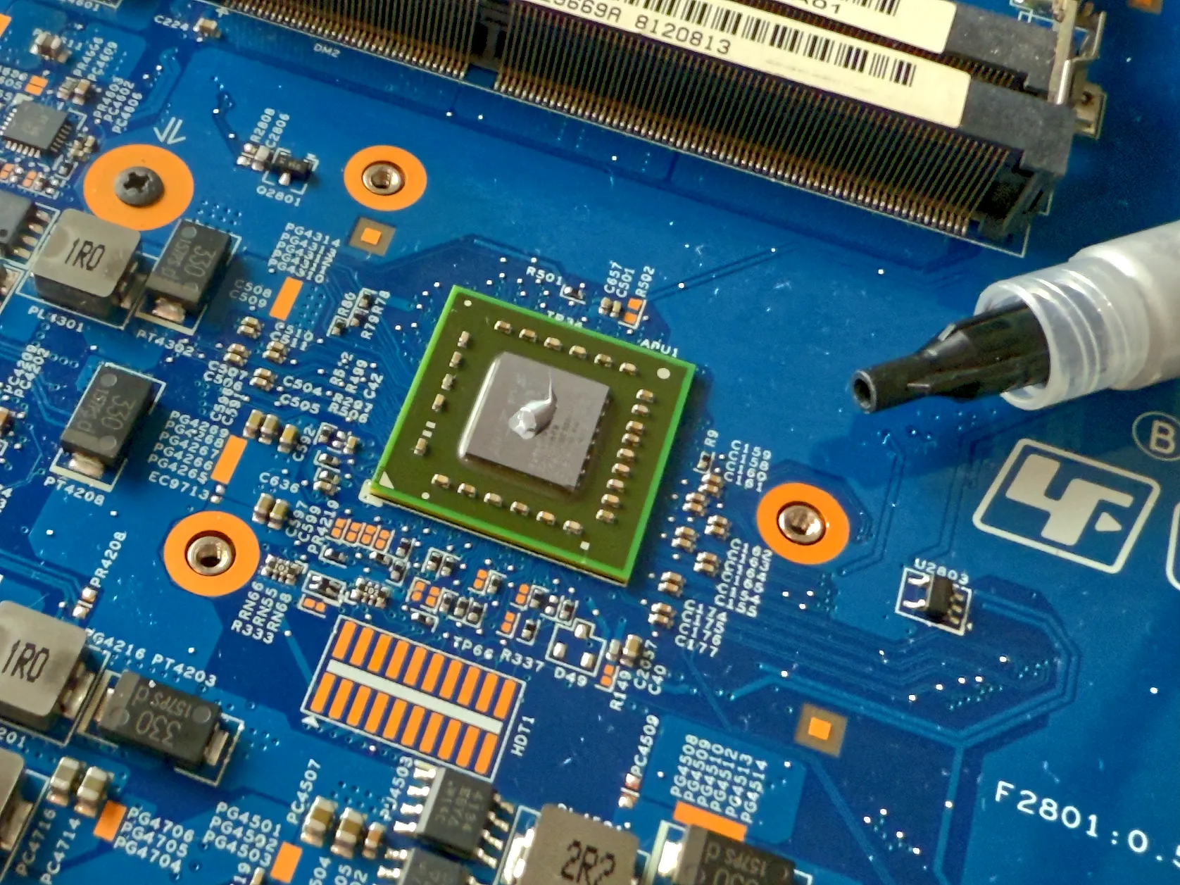 Radiatorul era complet blocat de un „covor” dens de praf, transformând orice tentativă de răcire într-o misiune imposibilă pentru ventilator. Pe placa de bază am găsit inclusiv urmele unei vechi cafele care, din fericire, nu a scurtcircuitat nimic vital, dar a creat o peliculă lipicioasă care a atras și mai multă mizerie. Curăț PC-uri destul de des, însă rar mi-a fost dat să văd un dispozitiv care să supraviețuiască atât de mult timp fără o mentenanță minimă.