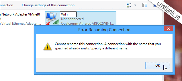 Dacă ați înlocuit de curând adaptorul de rețea și ați încercat redenumirea acestuia, Windows nu vă va permite să faceți acest lucru și va afișa mesajul „Error rename this connection. A connection…