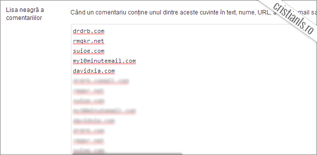 Cu câteva săptămâni în urmă, Cosmin îmi spunea ca un plictisit supărat pe viață îl necăjea cu comentarii aiurea. I-am recomandat să profite de Akismet și blacklist, introducând în acesta din urmă…