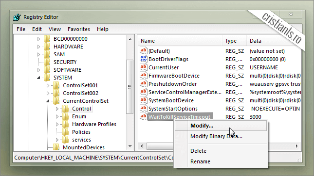 Cum se reduce timpul după care sunt oprite forțat programele ce nu răspund semnalului de închidere