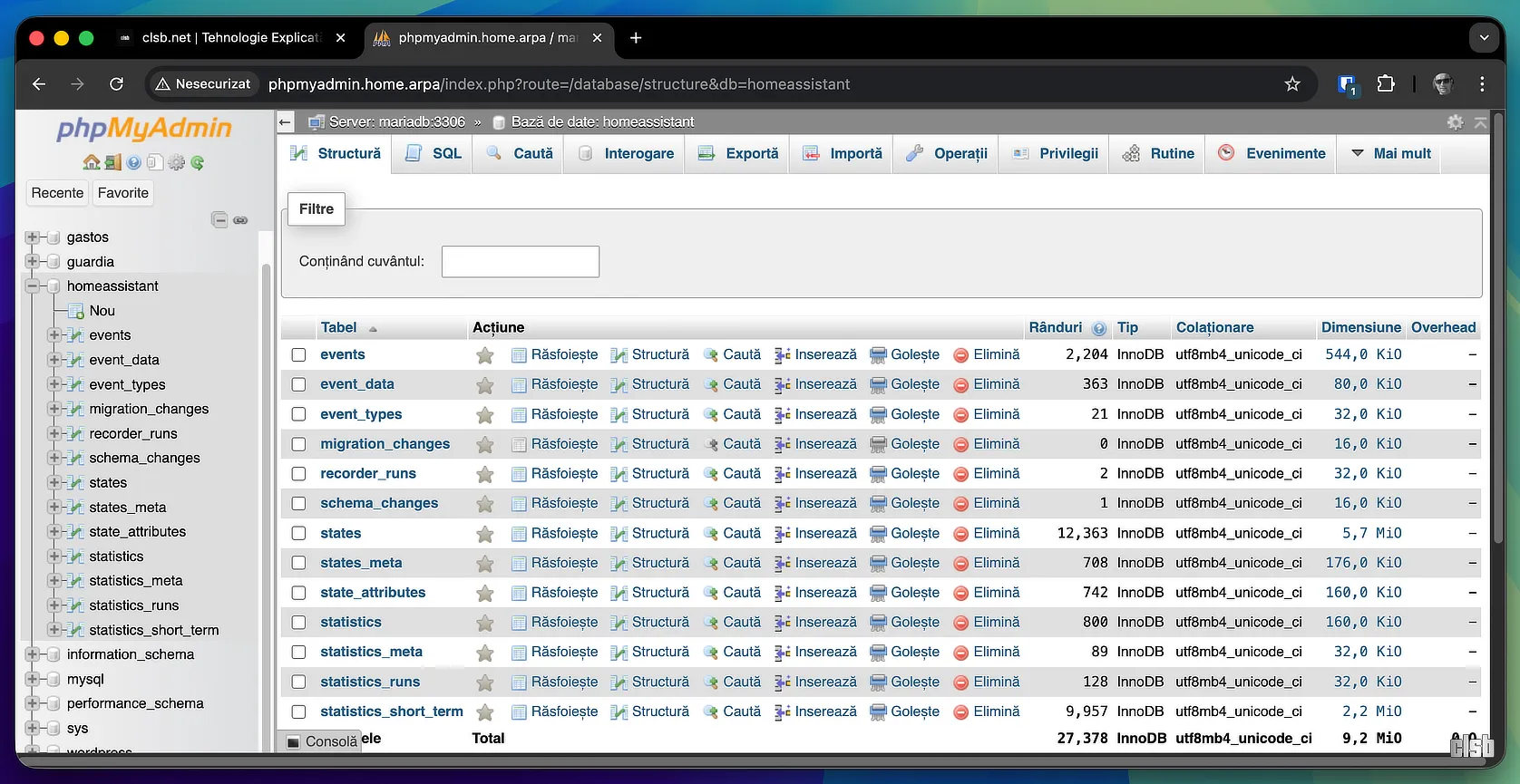 commit_intervalde mai jos). Chiar dacă rulează pe același server fizic, VM-ul Home Assistant nu mai este blocat de I/O și se poate concentra pe automatizări. - Fiabilitate: O bază de date de acest tip (SGBD) este mult mai rezistentă la corupere.