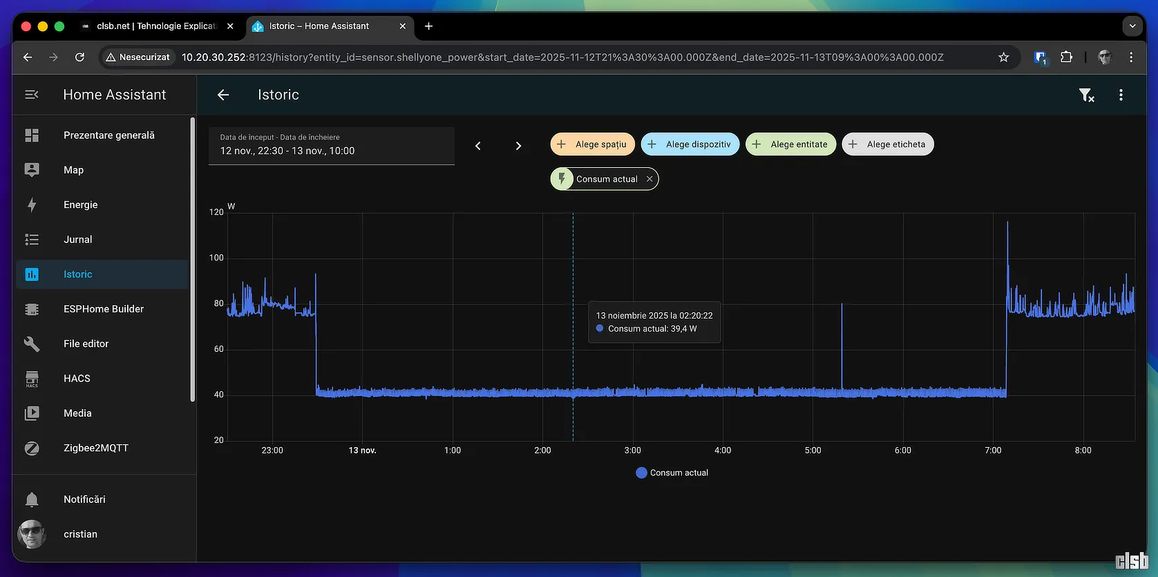 - Bază de Date Mult Mai Mică: Baza de date crește acum mult mai încet și stochează doar datele pe care le consider cu adevărat utile (ex. temperatură, consum de energie).