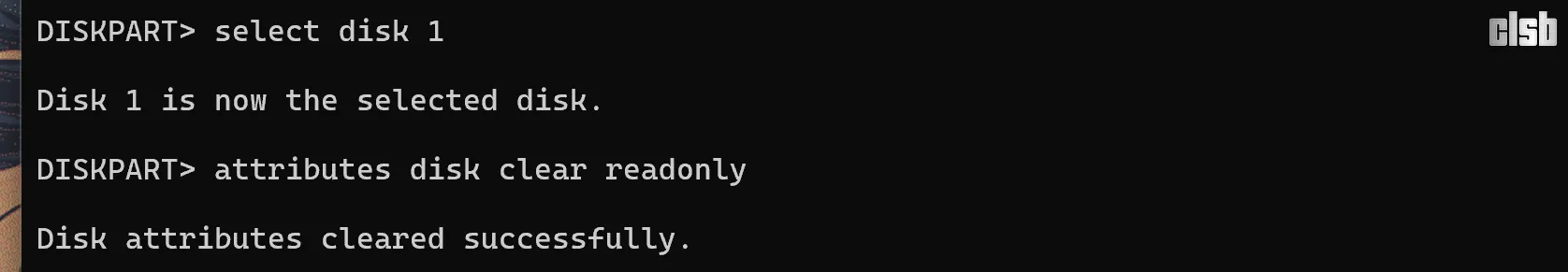 attributes disk clear readonly