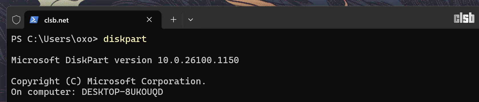 După deschiderea ferestrei, tastați diskpart și apăsați Enter: