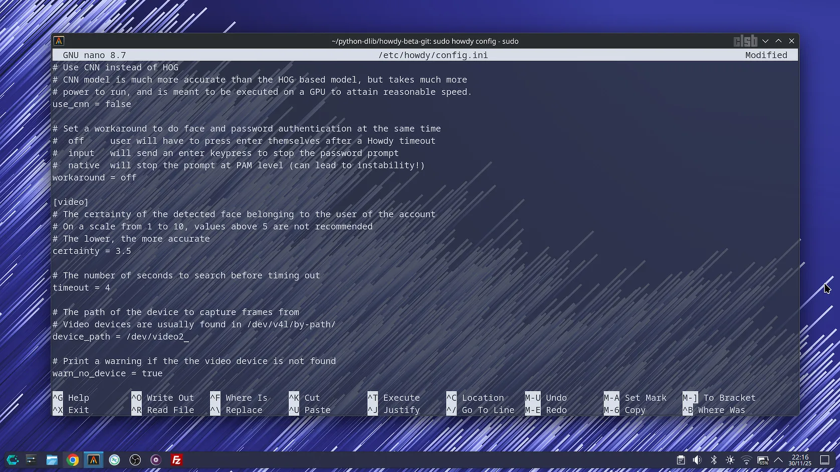 # sudo howdy config device_path = /dev/video2