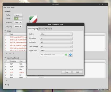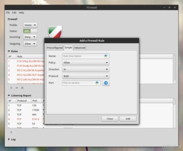 Interfața grafică a UFW este cât se poate de simplă și intuitivă și cu ajutorul acesteia vom putea activa sau dezactiva firewall-ul, închide și deschide porturi TCP și UPD, sau crea profile pe care să le utilizăm în funcție de locația în care ne aflăm.