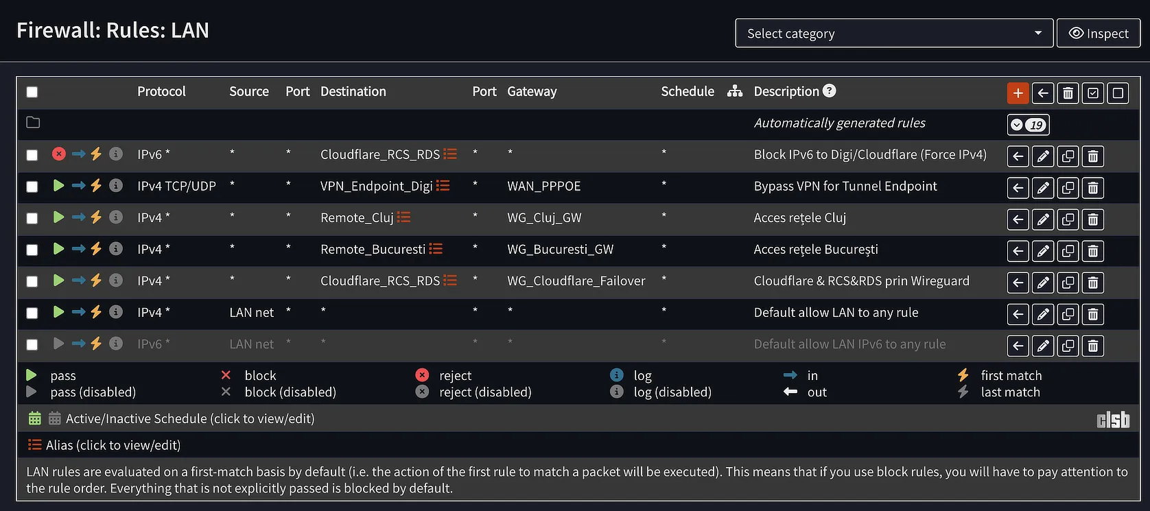 Dacă tot ce urmăriți e să deviați un trafic specific printr-un tunel WireGuard, aliasul Cloudflare_RCS_RDS e singura de care veți avea nevoie.