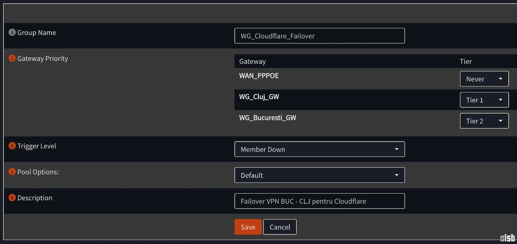 WG_Cloudflare_Failover. - Configurați prioritățile (Tier):