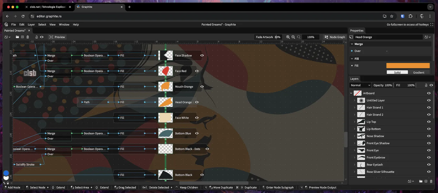 La baza Graphite stă un concept puternic: editarea nedistructivă. Spre deosebire de editorii tradiționali, unde modificările sunt aplicate direct pe pixeli sau vectori (adesea permanent), în Graphite fiecare acțiune – de la desenarea unei linii, la aplicarea unei culori sau a unui efect – devine un nod într-un graf.