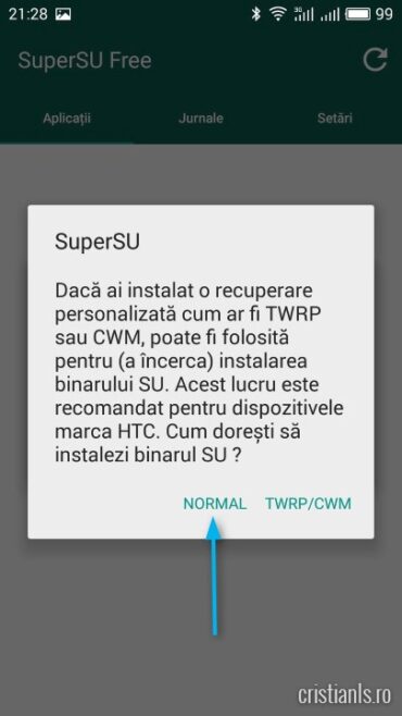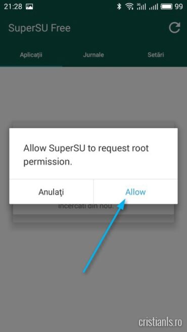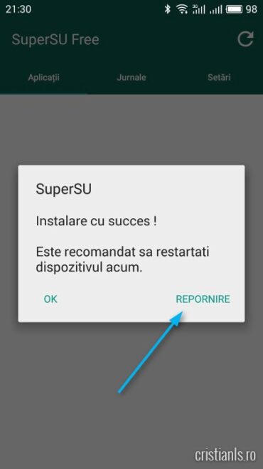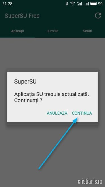 După instalarea manuală a celor trei aplicații, deschideți SuperSU și efectuați actualizarea.