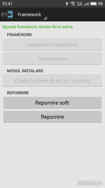 Dacă ați urmat corect pașii indicați până acum, instalarea ar trebui să se fi efectuat. Reporniți telefonul și verificați, prin deschiderea aplicației Xposed Installer, instalarea framework-ului.