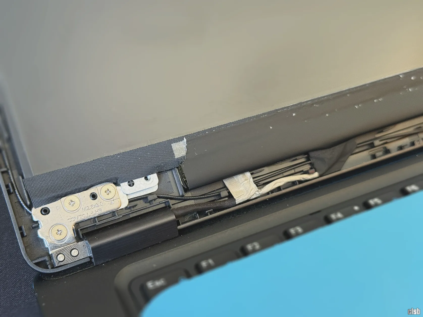 Aceasta era o problemă gravă, deoarece folia de aluminiu de pe capac ar fi putut intra în contact cu componentele electronice, provocând un scurtcircuit. Ca și cum nu era de ajuns, cablul care asigură funcționarea camerei web, a microfoanelor și a senzorilor fusese dezlipit și apoi repoziționat în grabă.