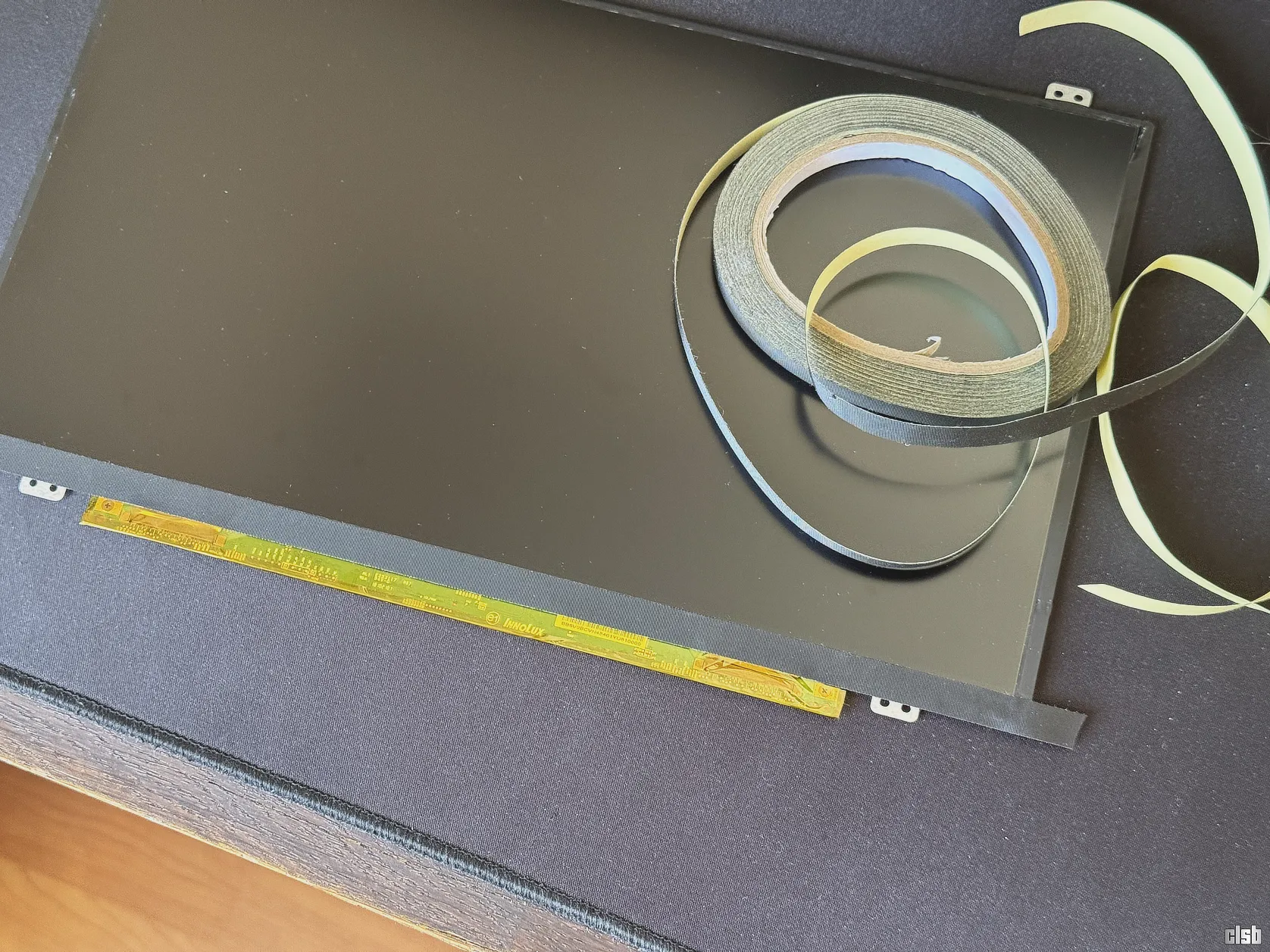 Ulterior, am folosit bandă adezivă rezistentă la temperaturi înalte, bandă textilă pentru izolare și bandă dublu-adezivă specială pentru electronice (pentru a așeza cablul la locul lui sau remonta rama) și reface totul ca la carte.