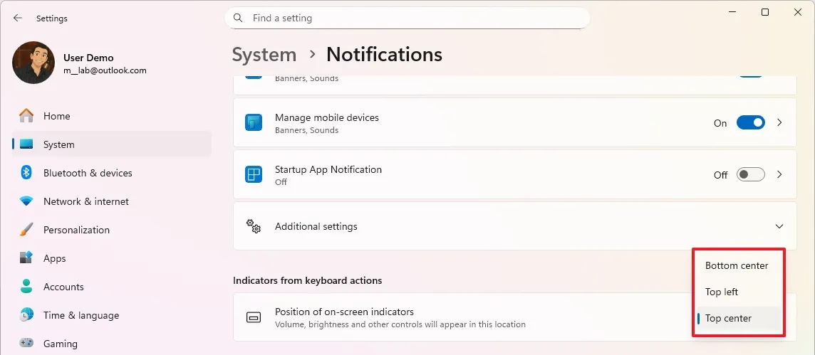 O nouă opțiune de personalizare, așteptată de mulți, este posibilitatea de a muta indicatoarele hardware de pe ecran (volum, luminozitate, mod avion etc.). Opțiunile, disponibile în Setări > Sistem > Notificări, vor permite afișarea acestora în partea de jos (centru) sau în partea de sus (stânga sau centru), eliberând astfel spațiul vizual în funcție de preferințe.