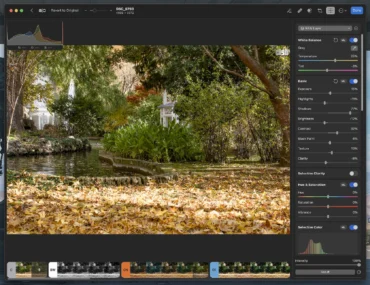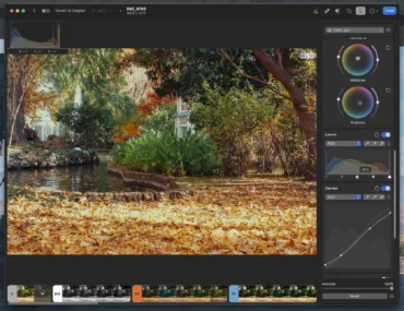 Unul dintre punctele forte ale aplicației este panoul de ajustări și filtre. Photomator pune la dispoziție o gamă variată de presetări și instrumente de corecție a culorilor care pot fi aplicate cu un singur click, dar care permit în același timp un control fin pentru cei care vor să personalizeze fiecare aspect al imaginii. Totul este vizual, rapid și extrem de responsiv.