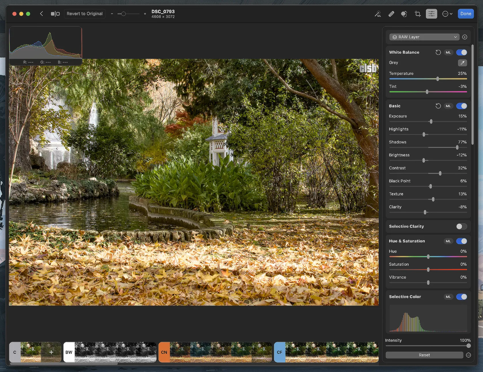 Mi-a luat mai puțin de 10 minute să trec de la o variantă la alta, deoarece Photomator reunește armonios instrumentele astfel încât editarea să se facă progresiv și natural.