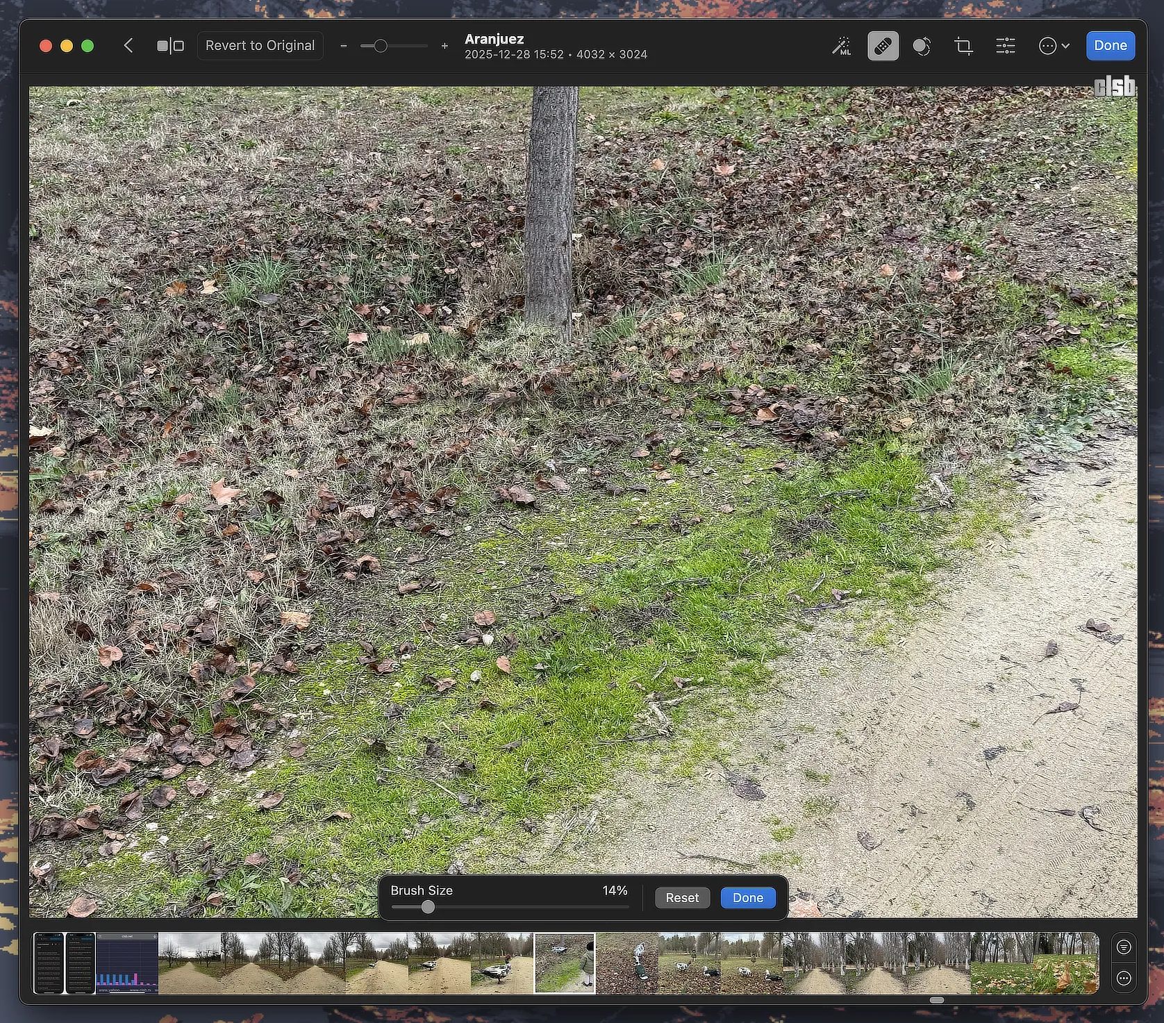 La fel ca instrumentele similare din alte aplicații, acesta face o treabă excelentă dacă obiectele vizate sunt de dimensiuni reduse (o doză de suc, un pachet de țigări, un chiștoc ori o pată). Totuși, am făcut un experiment și am încercat să îi elimin pe Mateo și rața pe care o urmărea prin parc. Rezultatul este binișor la prima vedere, însă la o analiză mai atentă se pot observa anumite stângăcii ale algoritmului, vizibile mai ales în zona rădăcinii pomului unde fusese rața.