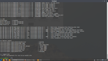 De asemenea, puteți verifica starea bateriei, executând în terminal comanda: