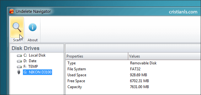 În urmă cu aproximativ o lună v-am vorbit despre trei dintre cele mai bune programe de recuperat date șterse, respectiv Recuva, Wise Data Recovery și Active Boot Disk. Astăzi revin la subiect pentru a vă prezenta un program pe care l-am cunoscut de curând și cu care, pentru a-l testa, am recuperat fotografiile șterse prin formatarea cardului de memorie a aparatului foto, cu funcția inclusă în acesta. Programul se numește Undelete Navigator, este gratuit, compatibil cu toate versiunile sistemului de operare Windows are o interfață minimalistă și intuitivă. Acesta permite recuperarea datelor șterse de pe Hard Disk-uri sau dispozitivele de stocare a căror sistem de fișiere este FAT, FAT32 sau NTFS.