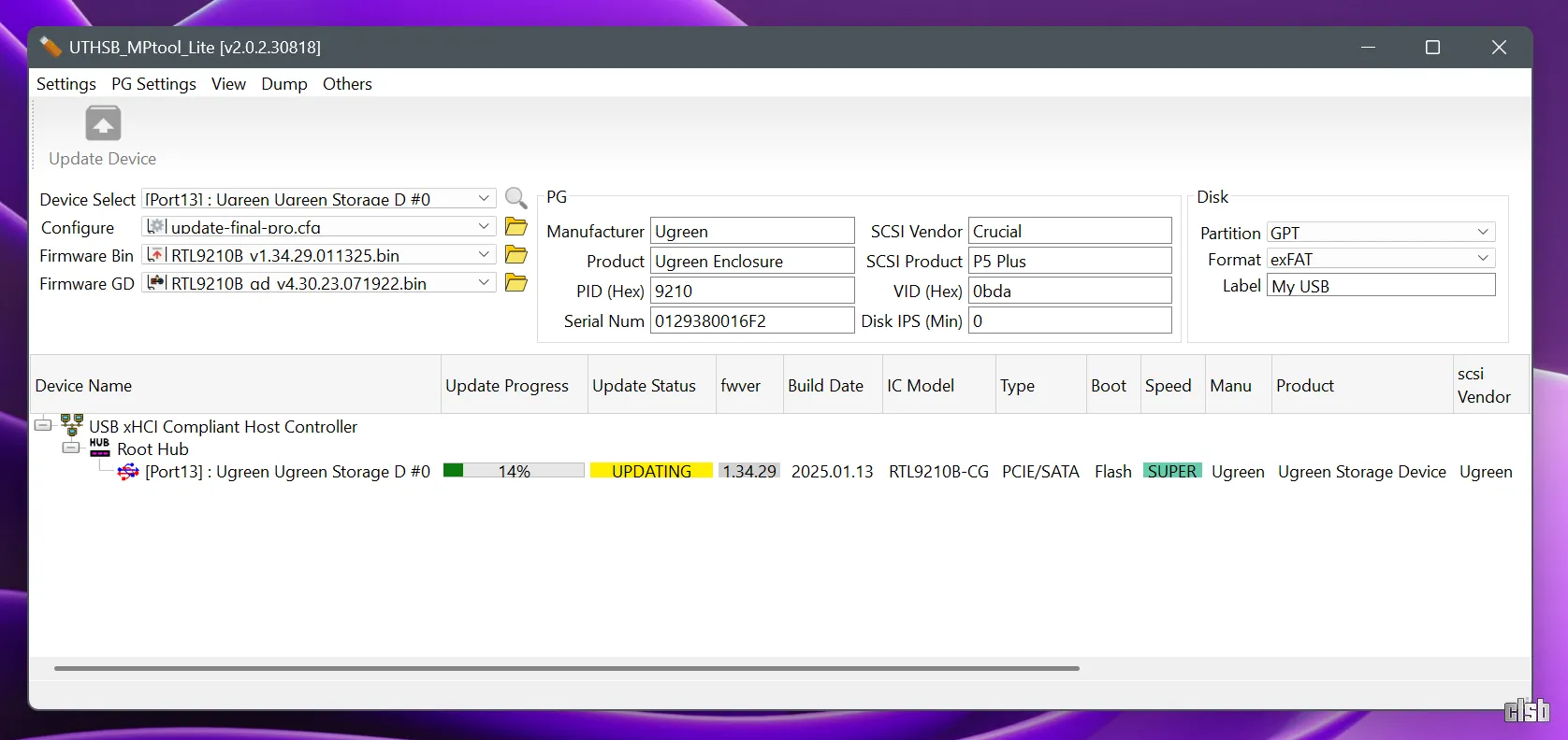 UTHSB_MPtool_Lite.execu drepturi de Administrator. - Conectați rack-ul Ugreen (cu SSD-ul în el).