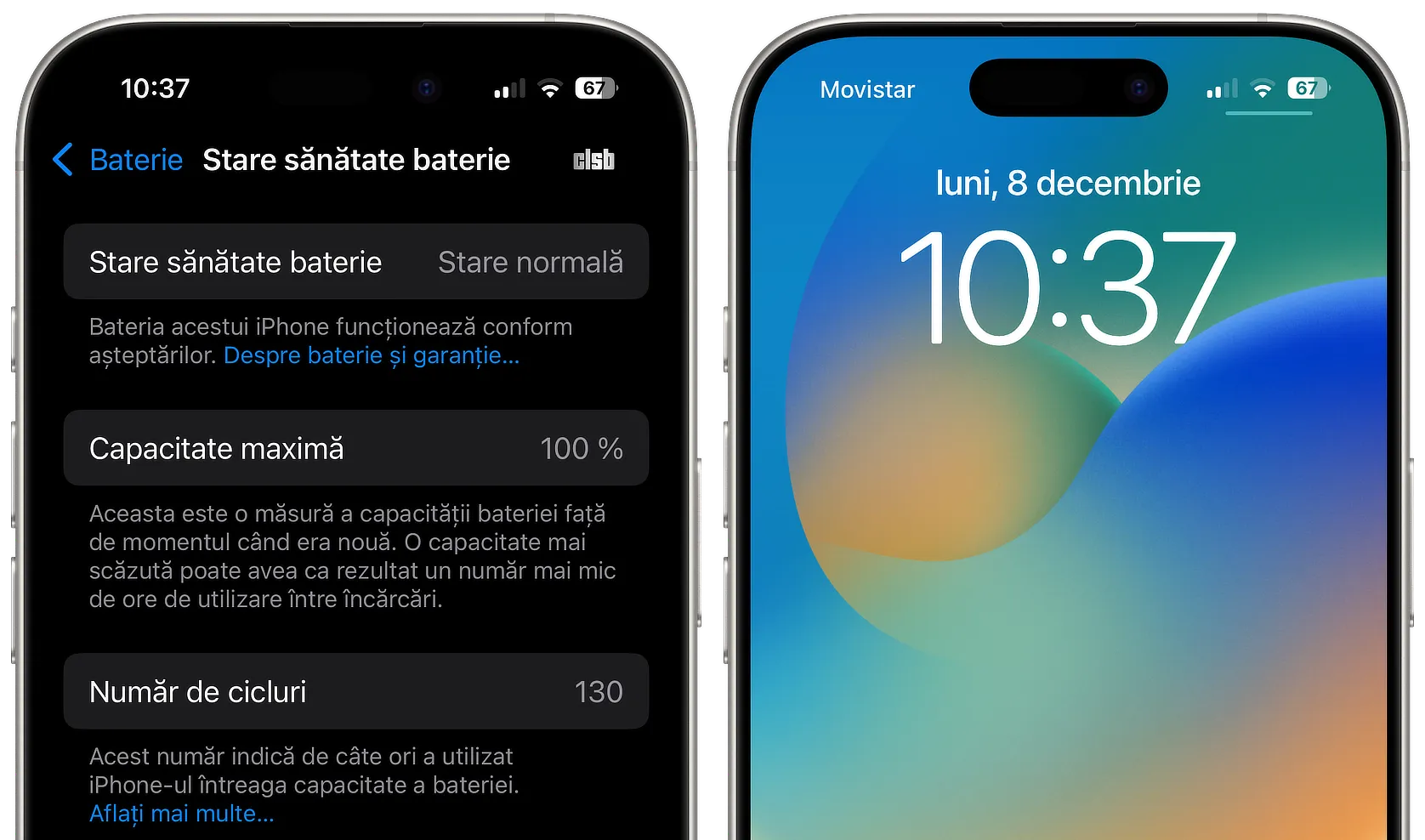 Rezultatele acestei strategii sunt, cel puțin până acum, încurajatoare. Deși telefonul a fost activat în aprilie 2025, iar acum suntem în luna decembrie, „sănătatea” acumulatorului a rămas intactă. După 130 de cicluri de încărcare completă și utilizare zilnică constantă, capacitatea maximă indicată de sistem a rămas la 100%.