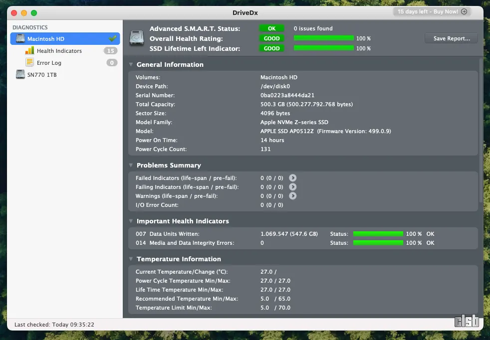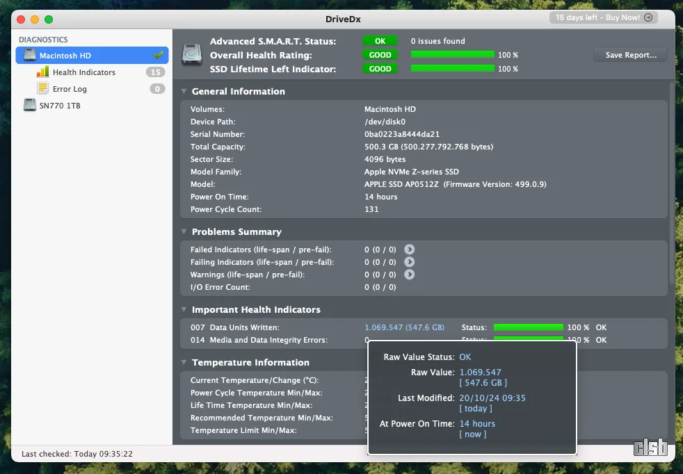 Când am cumpărat Mac-ul, pe Reddit circulau o serie de screenshot-uri alarmante. Mulți utilizatori de Mac-uri cu procesor M1 se plângeau de un presupus bug care făcea ca sistemul de operare să scrie date pe SSD în neștire, un fenomen ce ar fi dus, teoretic, la o uzură prematură și la moartea subită a unității de stocare. Fiind curios din fire și un pic paranoic, am verificat și eu situația după aproximativ o lună și jumătate de utilizare, iar statisticile S.M.A.R.T. arătau o uzură neglijabilă.