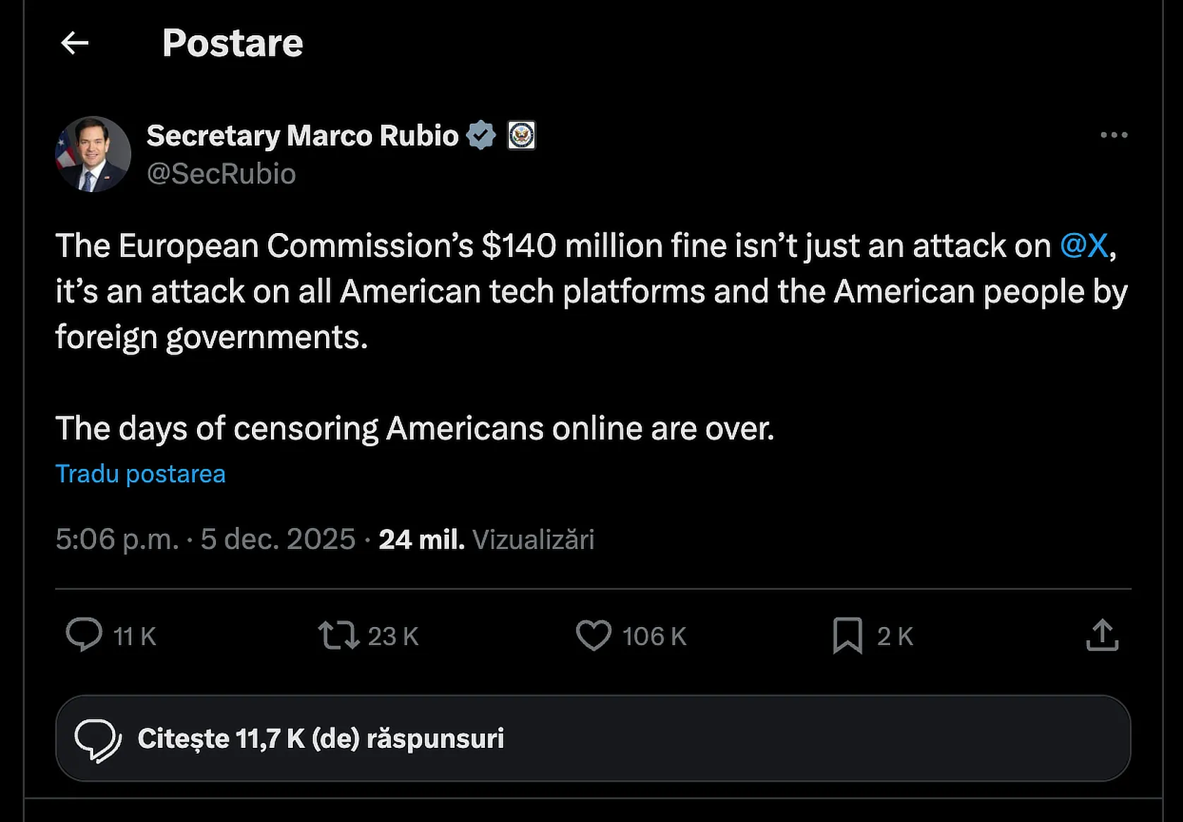 Iar reacțiile virulente nu au întârziat să apară, venind inclusiv de la cel mai înalt nivel din SUA, sub pretextul că „UE vrea să ne cenzureze cetățenii”.