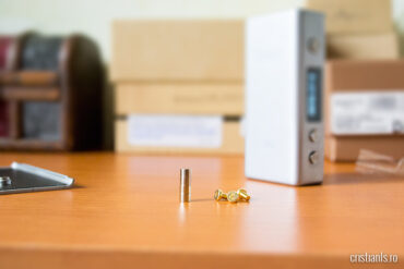 Cutia conținea un cablu USB mini pentru încărcare, 4 magneți de rezervă (sistemul de închidere a capacului lateral este pe bază de magneți), trei șuruburi „pin” și un săculeț negru de catifea, pentru transport și păstrare. Ce nu-mi place la ansamblul Kayfun 4 + Cloupor mini e că arată foarte anapoda împreună, mi-ar fi plăcut ceva în genul lui Kanger SUBOX Mini dar și de o bună calitate.