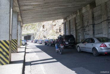 După ce am fotografiat vreo 15 minute tot ce se putea fotografia înainte de intrarea în tunelul-afumătoare Capra-Bâlea, văzând coloana de mașini care încă staționa, am tras aer în piept, mi-am luat inima-n dinți și picioarele-n brațe și-am intrat vitejește.
