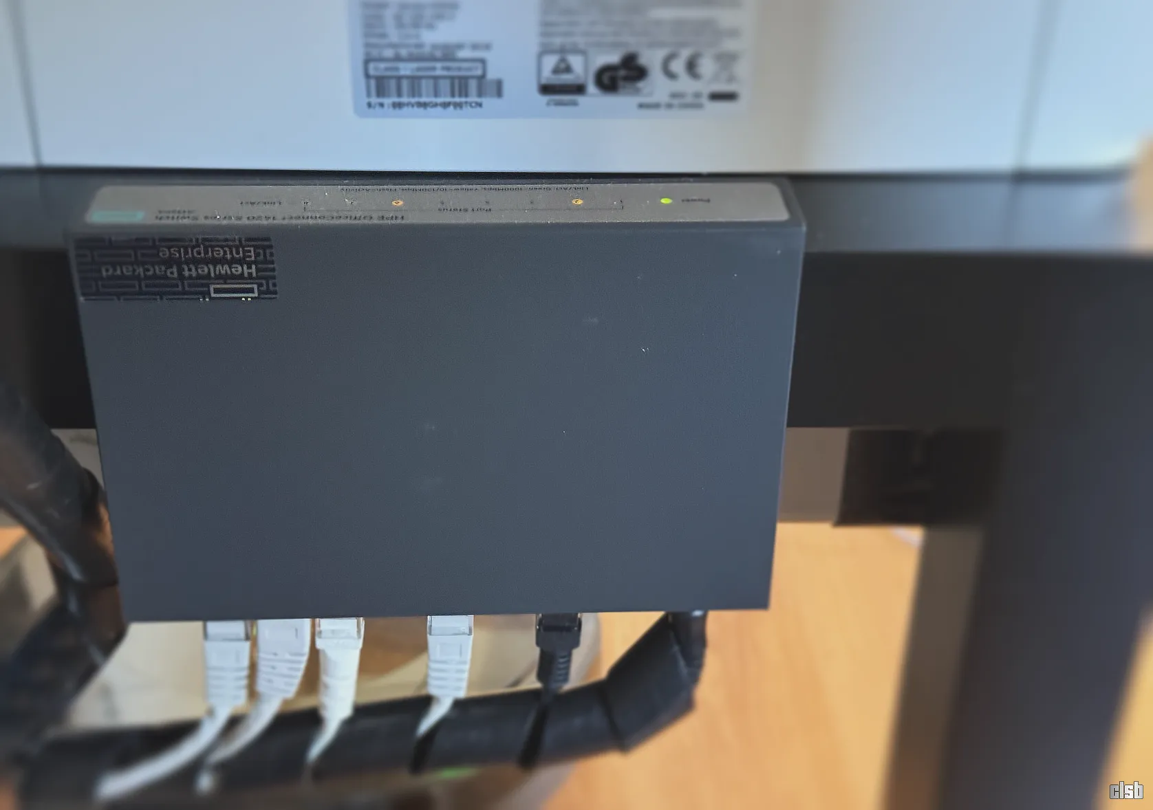 Din switch-ul HPE pleacă restul conexiunilor: imprimanta, Dell-ul 3070 cu Proxmox, gateway-ul Zigbee, dock-ul ThinkPad pentru laptopul de serviciu și NAS-ul QNAP.