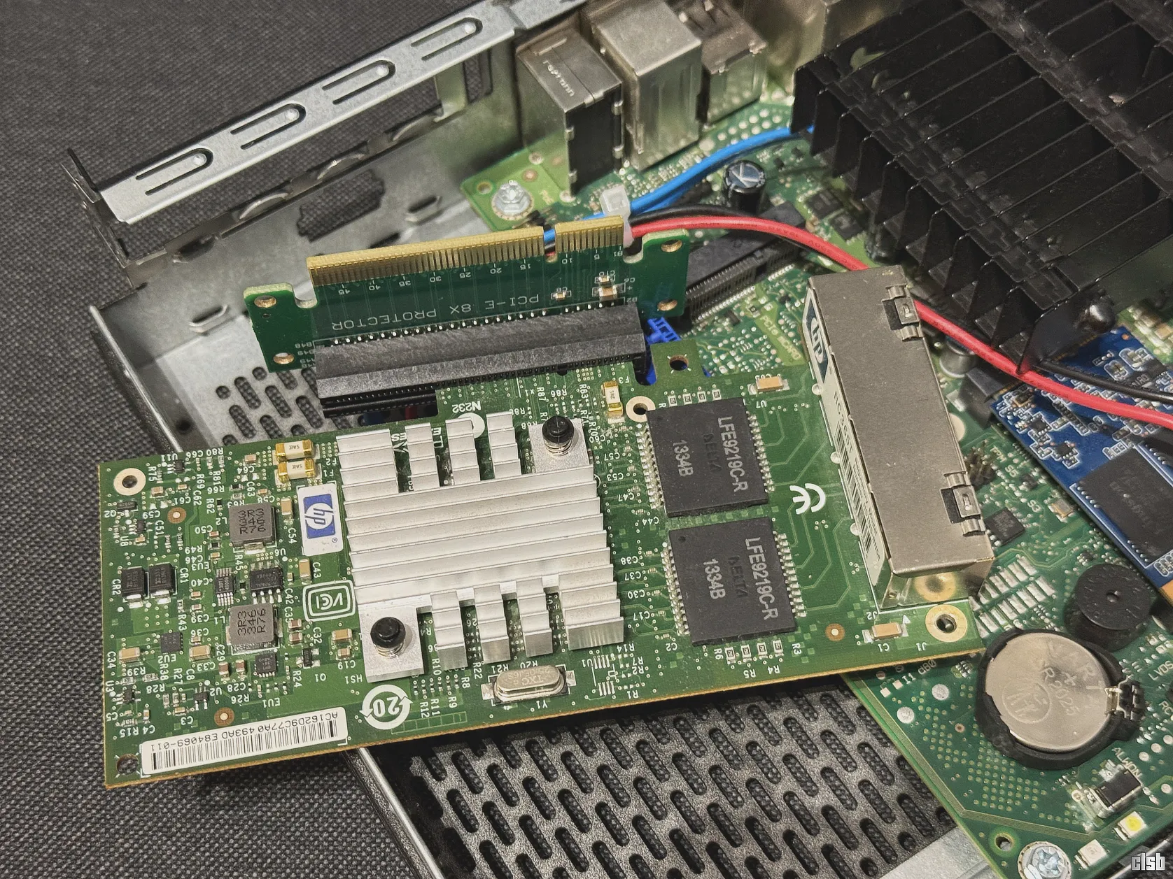 Principalul avantaj era, desigur, designul fanless. Carcasa perforată și răcirea pasivă ar fi eliminat complet problema zgomotului, chiar și cu placa de rețea Intel NC365T instalată. Aveam deja și un riser PCIe la 90 de grade, cumpărat de pe AliExpress cu câteva luni în urmă.