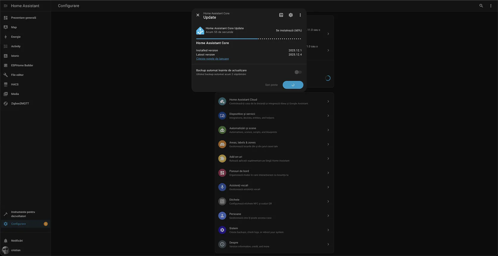 Alaltăieri dimineață, în pauza binemeritată dintre sarmale și cozonac, mi-am făcut în sfârșit curaj să actualizez instanța de Home Assistant. Trecuseră mai bine de doi ani de la ultima intervenție majoră, timp în care am evitat procesul ca pe o vizită la dentist, chiar și atunci când am făcut integrarea gateway-ului Zigbee Silvercrest. Știam exact ce mă așteaptă: o listă lungă de automatizări care refuză să mai pornească, senzori care intră în grevă și camere video care necesită reconfigurări laborioase.