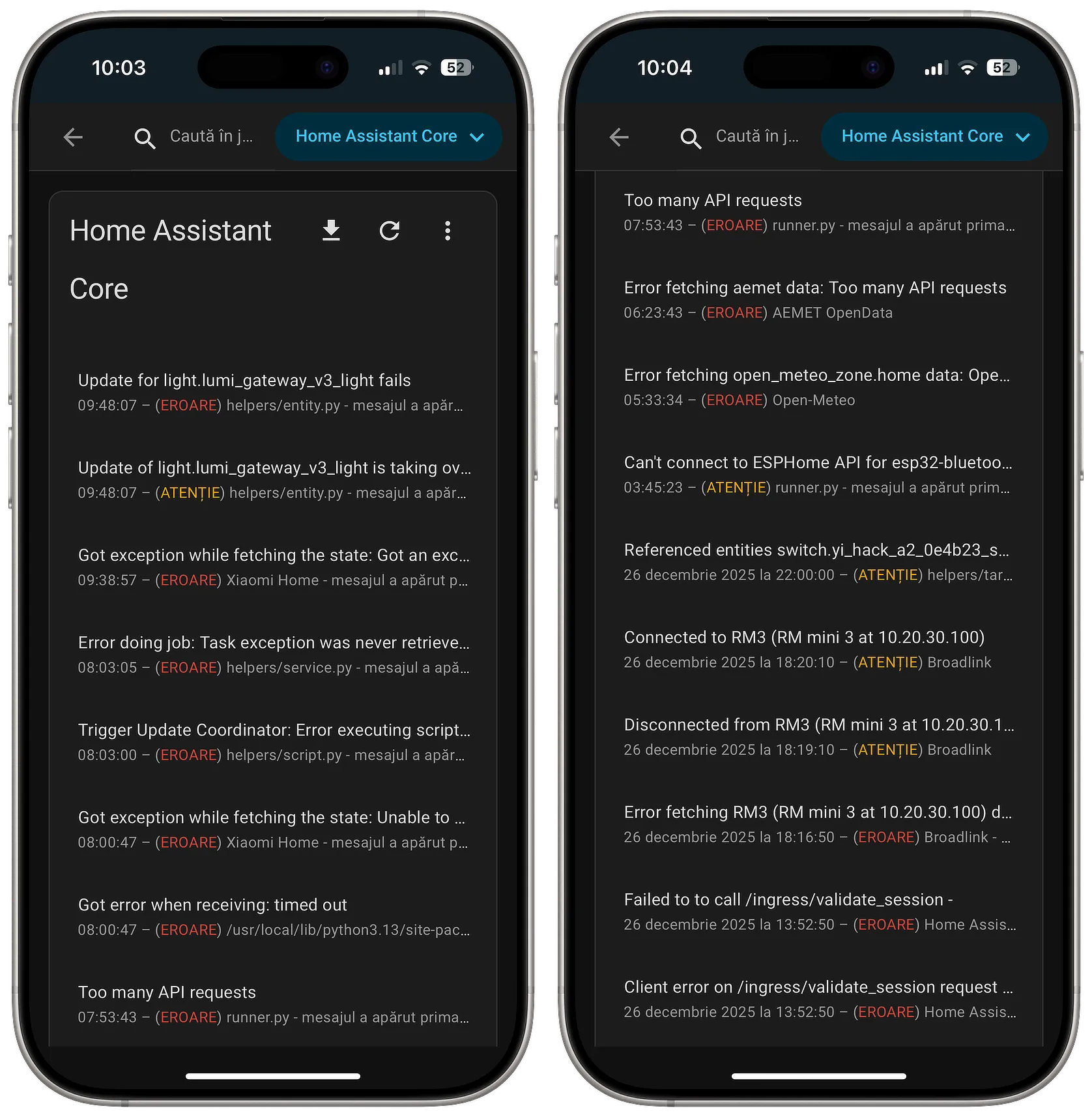 Revenind la Home Assistant, gândul că după această actualizare voi mai putea sta liniștit încă vreo doi sau trei ani m-a împins, totuși, să duc procesul până la capăt. Deși am urmat procedura „ca la carte” și nu am sărit direct la ultima versiune, ci am făcut pași graduali, rezultatul a fost cel anticipat: am pierdut treptat majoritatea integrărilor. Mi-a luat ore bune de muncă să pun totul la punct și, sincer să fiu, încă mai primesc notificări despre mici erori de configurare.