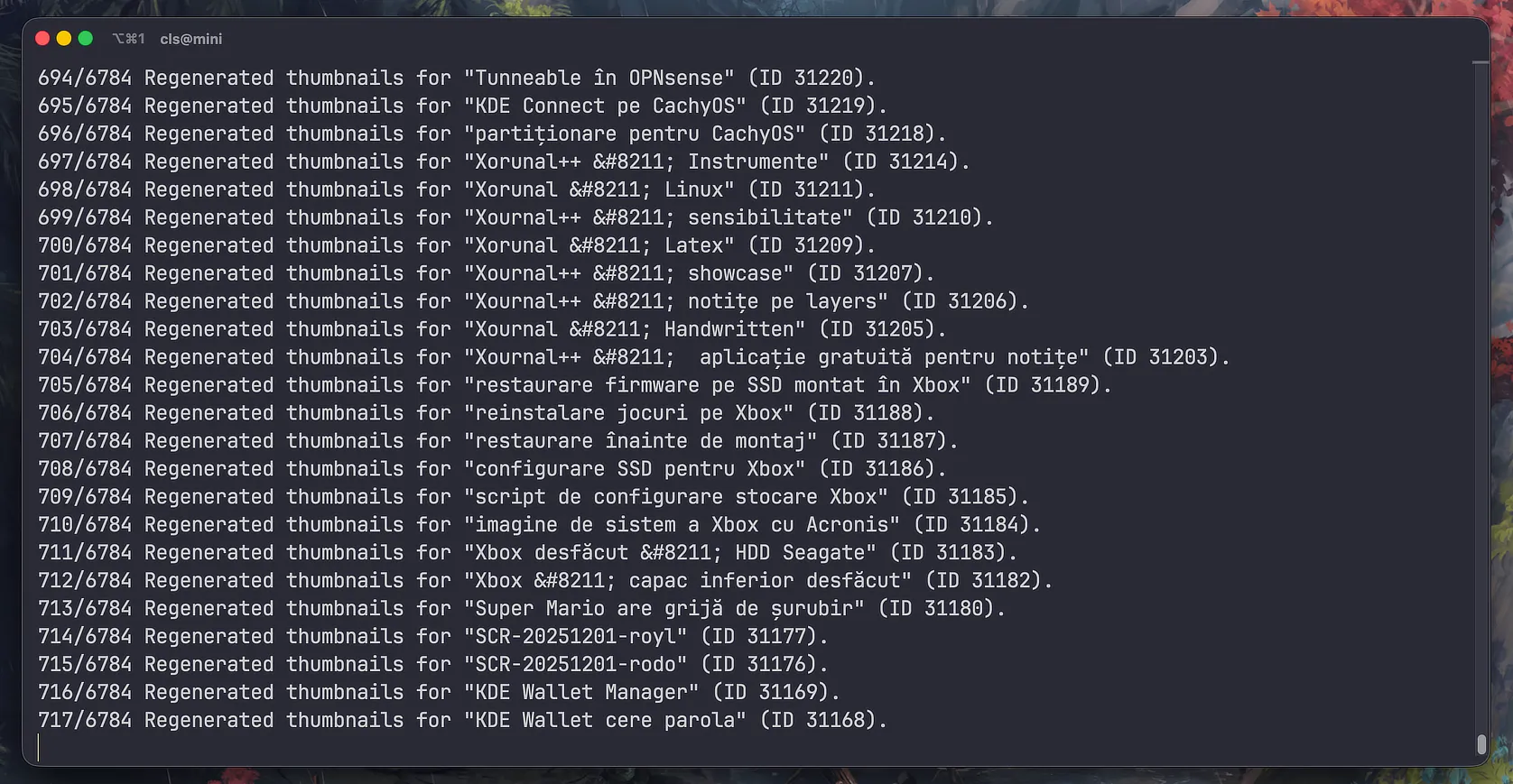 La prima vedere, totul părea să funcționeze corect, însă realitatea m-a lovit abia când era deja prea târziu să mai apelez la un snapshot salvator. Am aflat de la voi că sistemul de caching o luase razna, împiedicând publicarea comentariilor, iar optimizatorul de imagini, menționat cu mândrie în jurnalul de blog anterior, devenise nefuncțional. A trebuit să reconfigurez totul și inclusiv să fac o reindexare a tuturor miniaturilor.