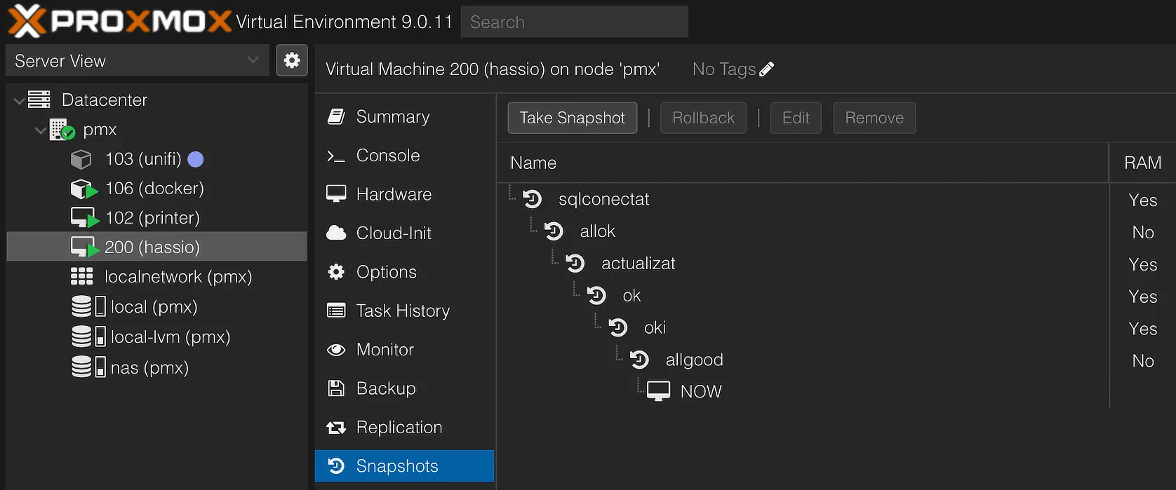 Unul dintre motivele principale pentru care am ales să folosesc soluții precum OPNsense, Proxmox, CachyOS sau macOS este posibilitatea de a realiza un snapshot înainte de orice actualizare majoră.