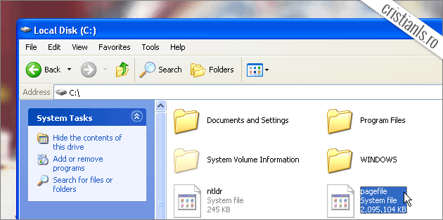 Salut Cristian, eu am windows xp si mereu imi arata ca disk C are 0 memorie , desi imi tin toate folderele si fișierele in D, iar C are o valoare totala de minim 60 GB (windows si câteva programe sunt in C dar memoria lor totala nu depaseste 30 GB , nici nu atinge atât.